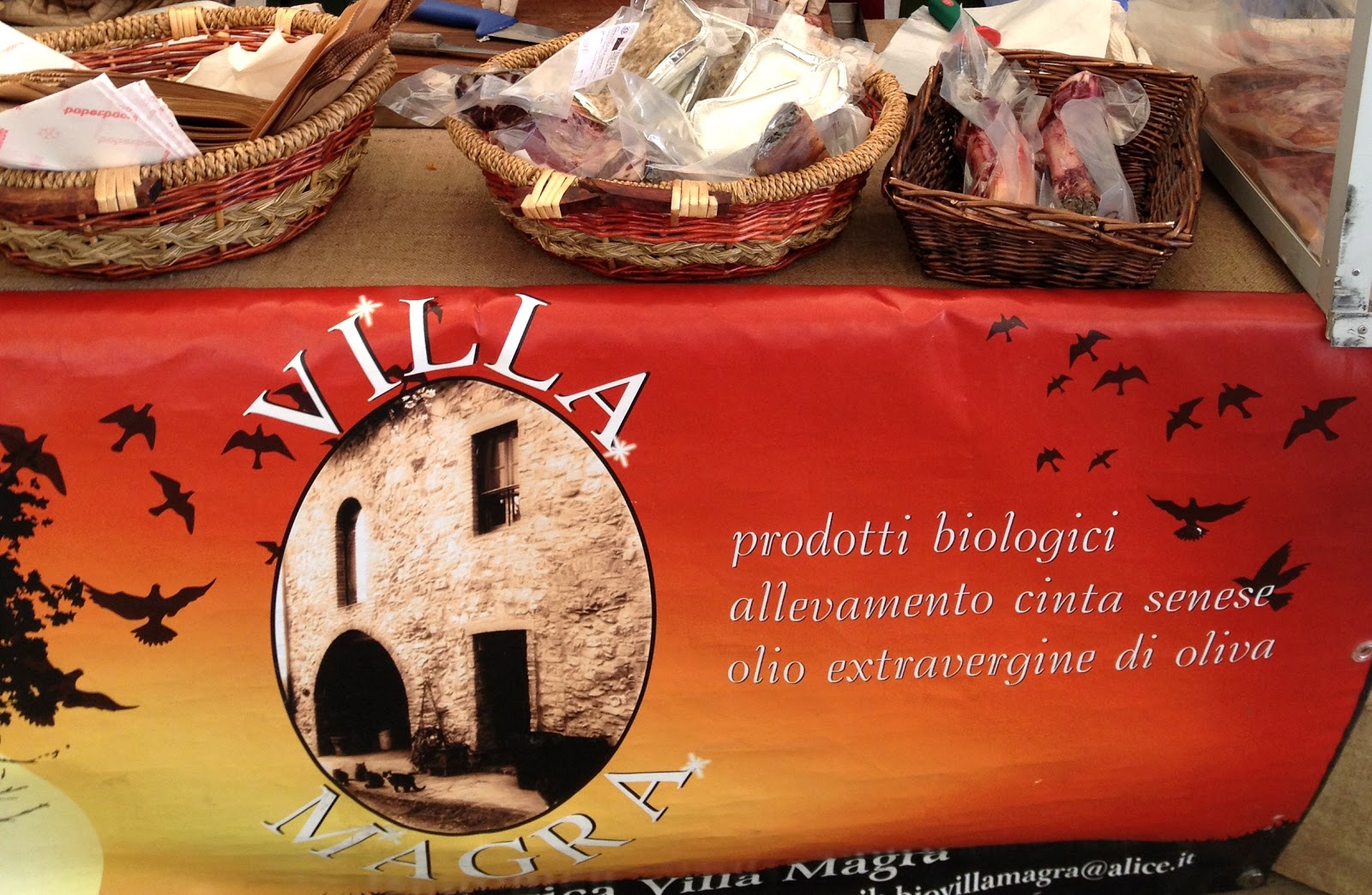Proprio al mercatino ho avuto il piacere di conoscere Alessandra proprietaria dell’Azienda agricola biologica “Villa Magra” e, parlando con lei, ho sentito la passione e la professionalità nel proprio lavoro, l’amore per i suoi prodotti e l’estrema cura del proprio allevamento di maiali di cinta, tant’è che leggendo la brochure informativa della sua azienda non posso che riportarvi alcune frasi estrapolate: