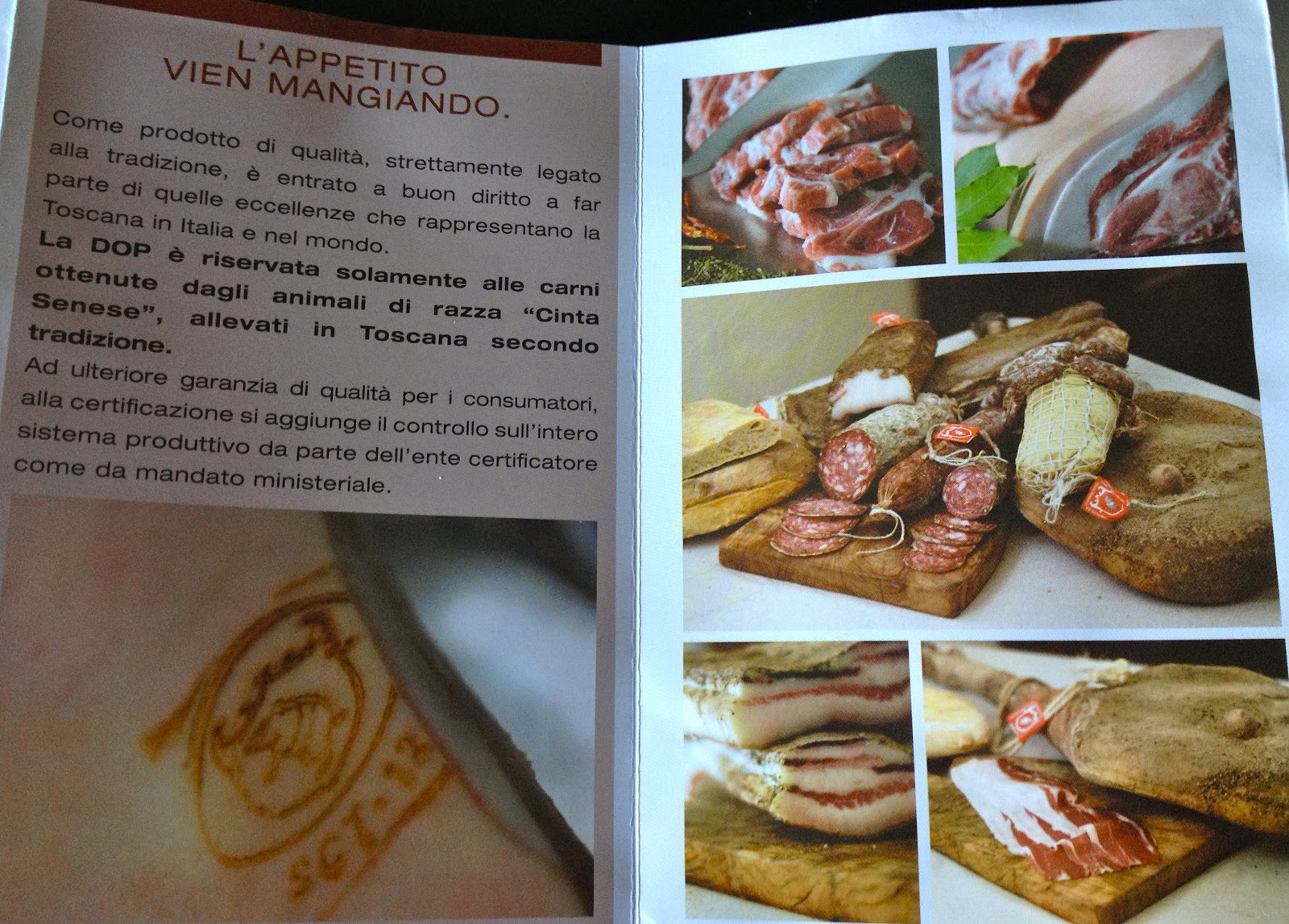 ” Ma è soprattutto dall’assaggio delle sue sublimi carni e dei prodotti di alta salumeria ottenuti, che si distingue la cinta senese. In particolare per il suo grasso morbido e saporito, ricco di antiossidanti Omega 3 e colesterolo buono, che fonde ad una temperatura di 34°C, contro i 65°C del lardo del suino tradizionale.”