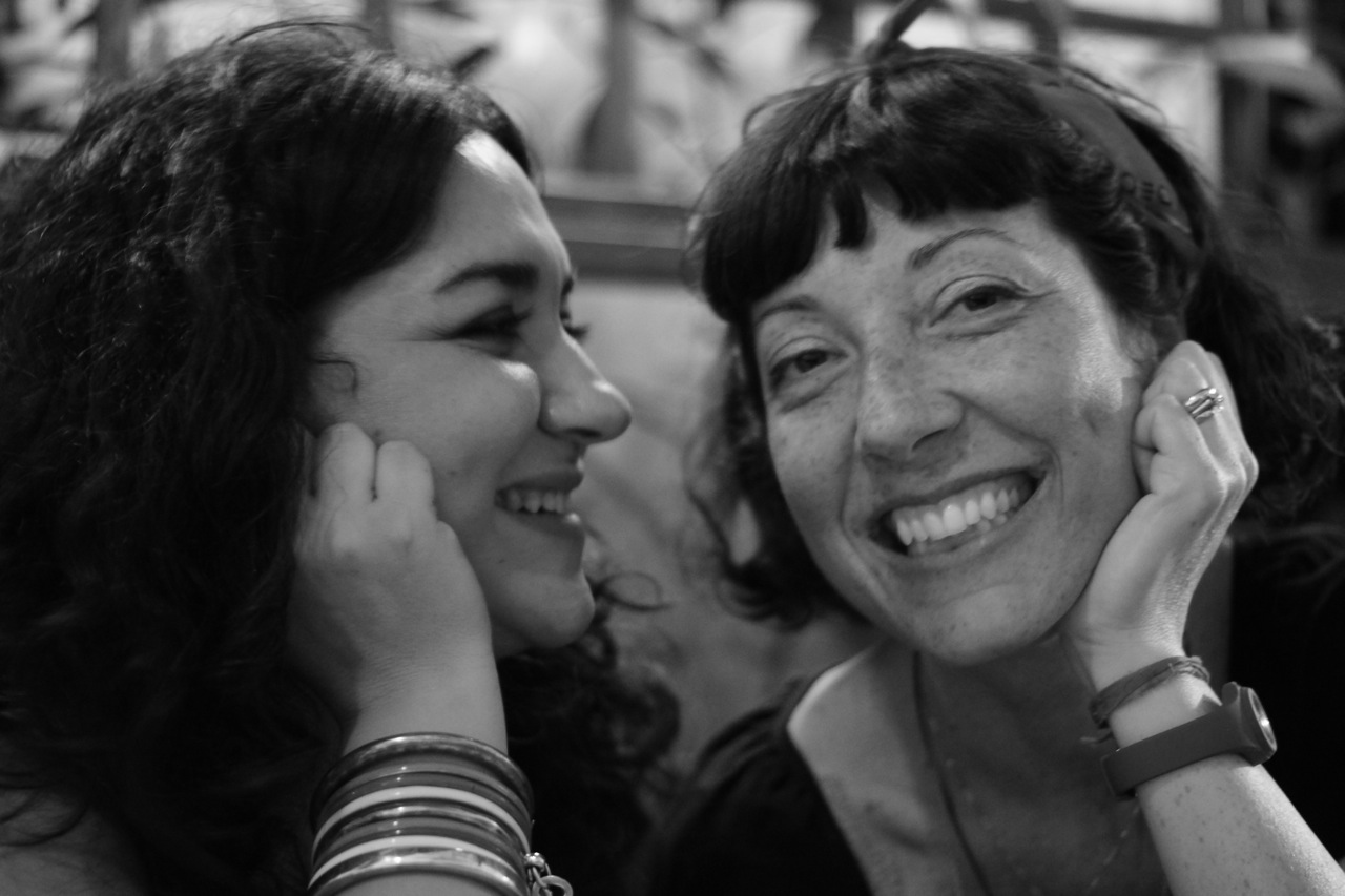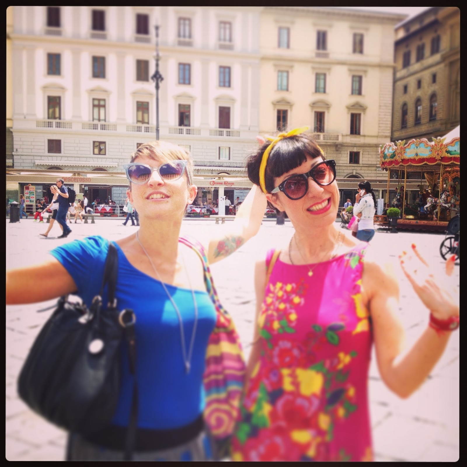Non riuscivamo a trovarci,  ci cercavamo tra la folla in diretta per telefono quando l’ho vista di fronte a me voltata di spalle, bellissimi ricci neri, gonna lunga fantasia e borsa di paillettes così le ho detto “sono qui dietro di te girati!!!!!” e ci siamo strette in un forte e lungo abbraccio!!!