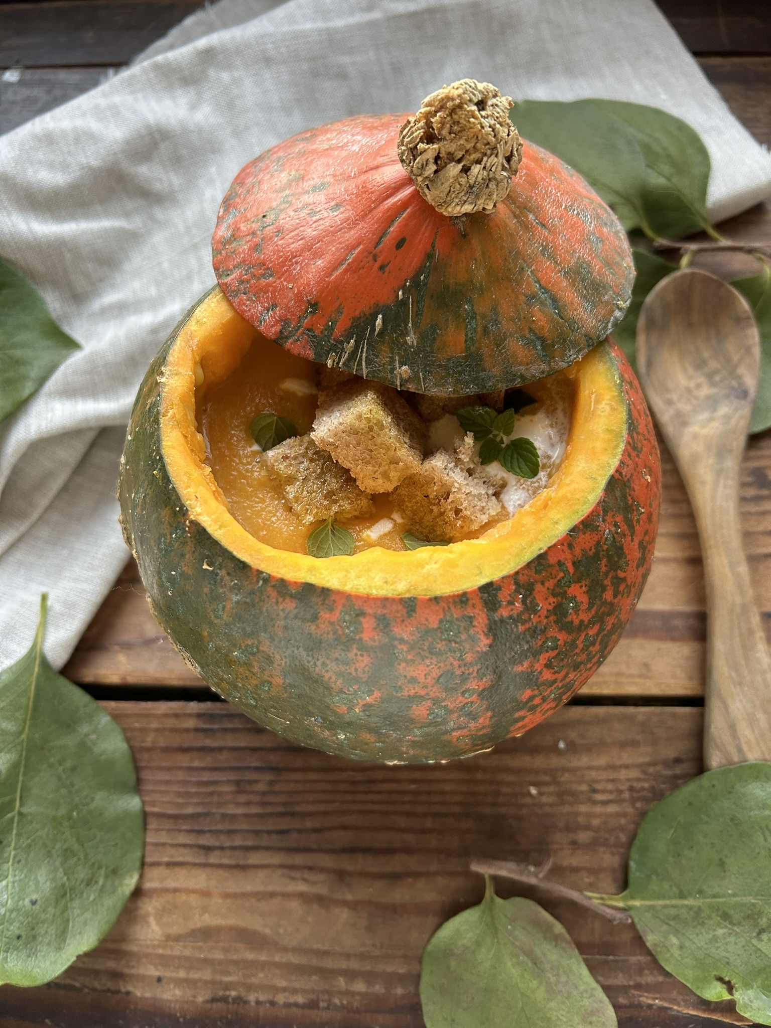 Questa vellutata oltre che essere una delle mie preferite la trovo perfetta anche per una cena a lume di candela, in modo che ognuno di voi avrà la vostra zucca da fiaba al tavolo.