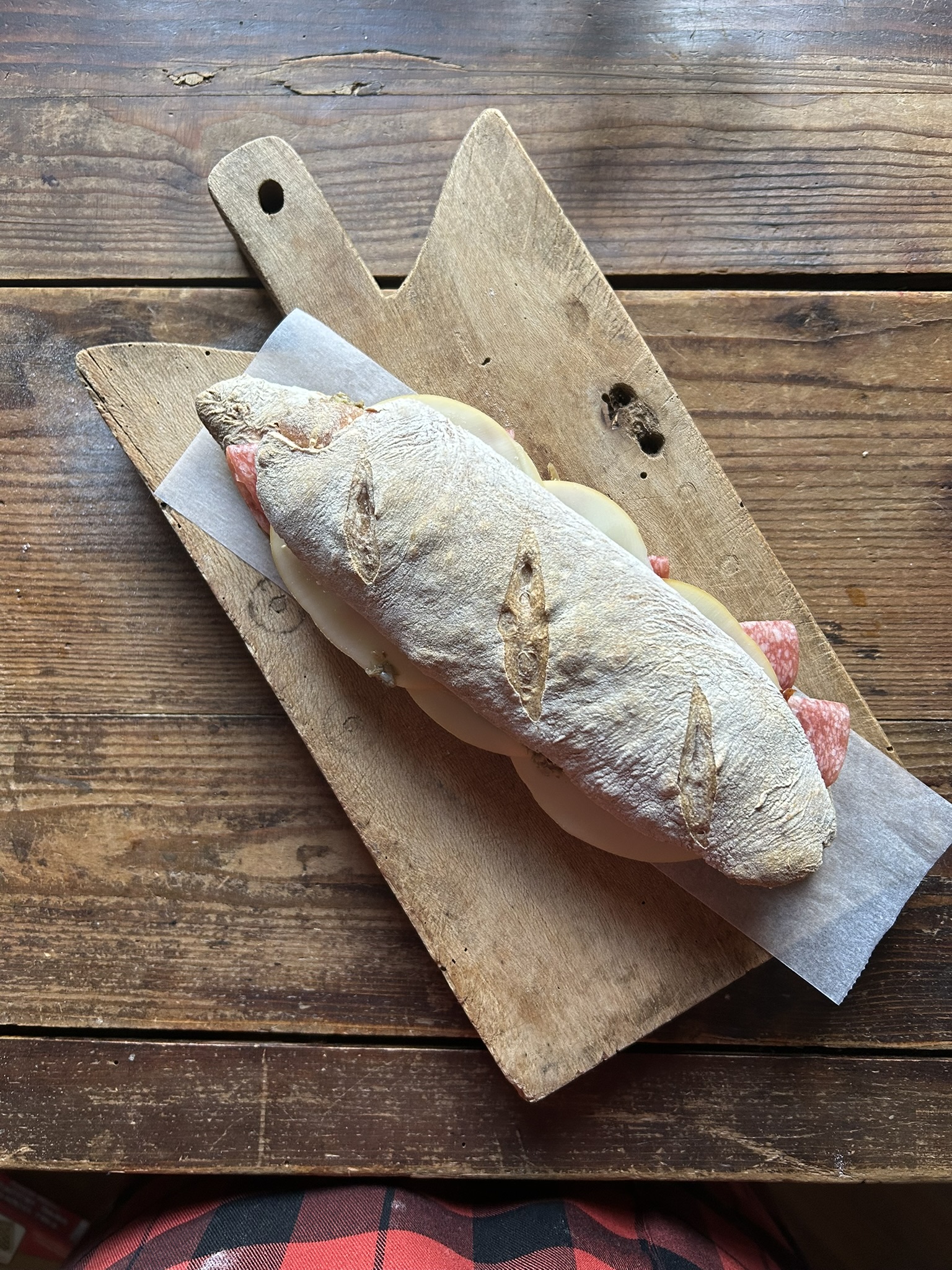 Con le baguette puoi creare anche dei panini sfiziosi, ho pensato di farcirli con salame e fontina, sempre un connubio perfetto e usare alcuni sottoli che preparo io, come i carciofi sottolio e i pomodori secchi sottolio.