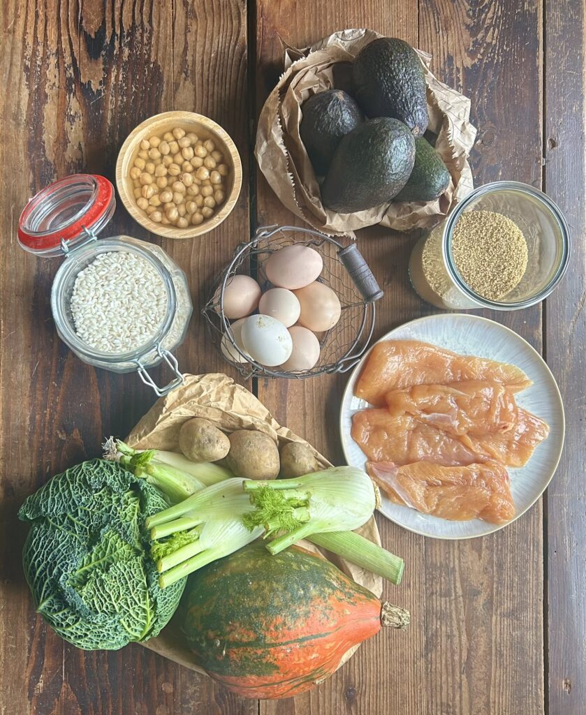 Le proteine come l’uovo puoi cuocerlo sodo, la carne come il pollo puoi cuocerlo e tenere tutto in contenitori ermetici e usarli per una insalata, o un wrap per esempio.