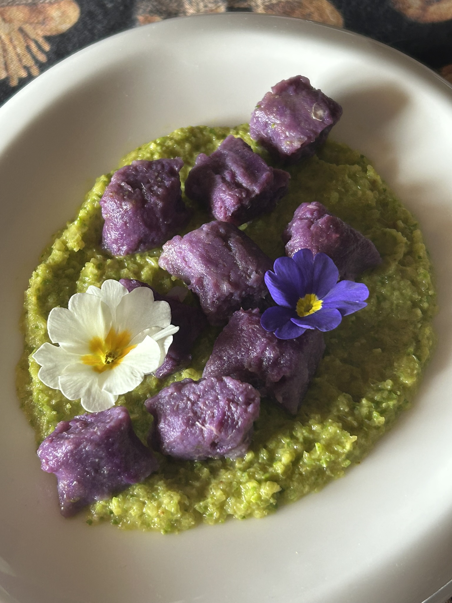 Un piatto bellissimo anche al primo sguardo. Il contrasto viola e verde sono un tributo alla primavera e, come vi dico sempre io anche la mise en place vuole la sua giusta cura.