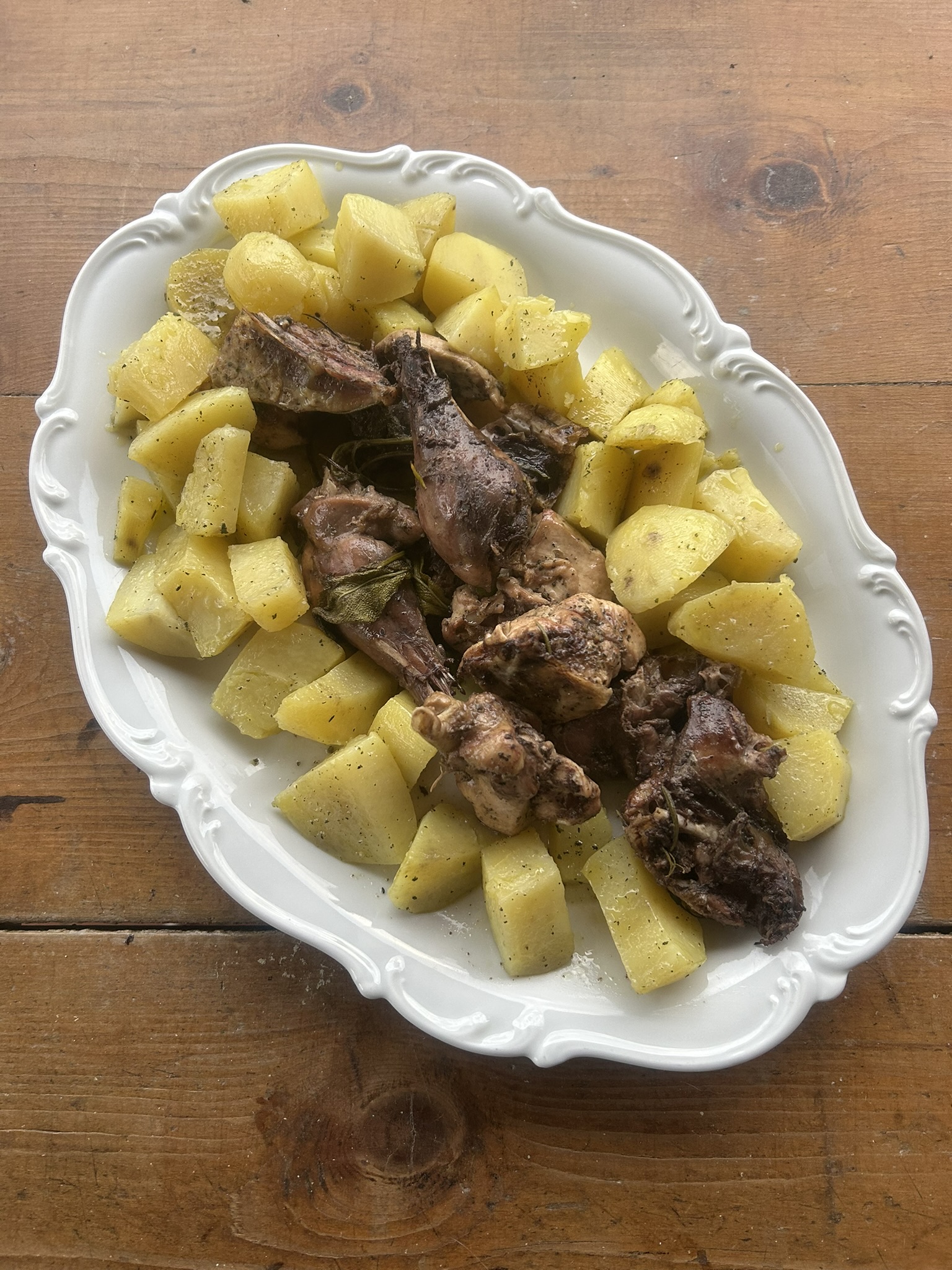 Quando le persone mi regalano cibo io sono al settimo cielo e per onorarle cerco di cucinare in modo eccellente. Mia mamma mi aveva detto di farlo ripieno, ma, siccome nel momento in cui ho iniziato a prepararlo lei non c’era, ho pensato di farlo come faccio il coniglio, ma in bianco.