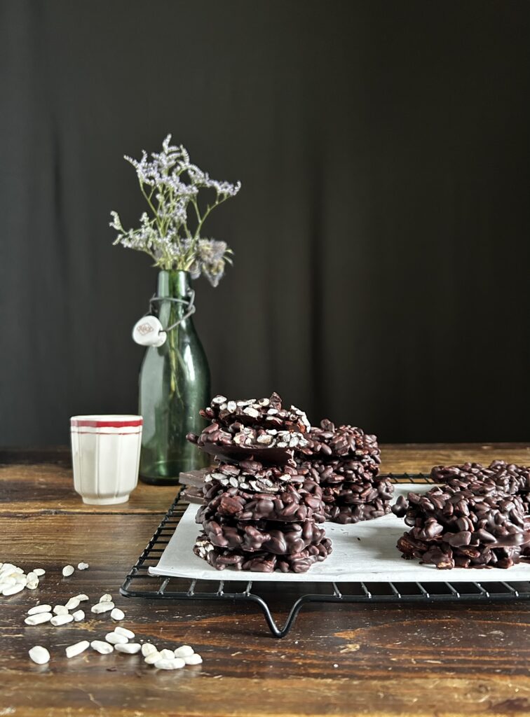 ci sono ricette così semplici che non puoi non fare, quindi compra il riso soffiato, il cioccolato sono sicura ne avrai in dispensa e mettiti all’opera. Io le ho preparate con Elio, e così evito di comprargli i kinger cereali industriali!