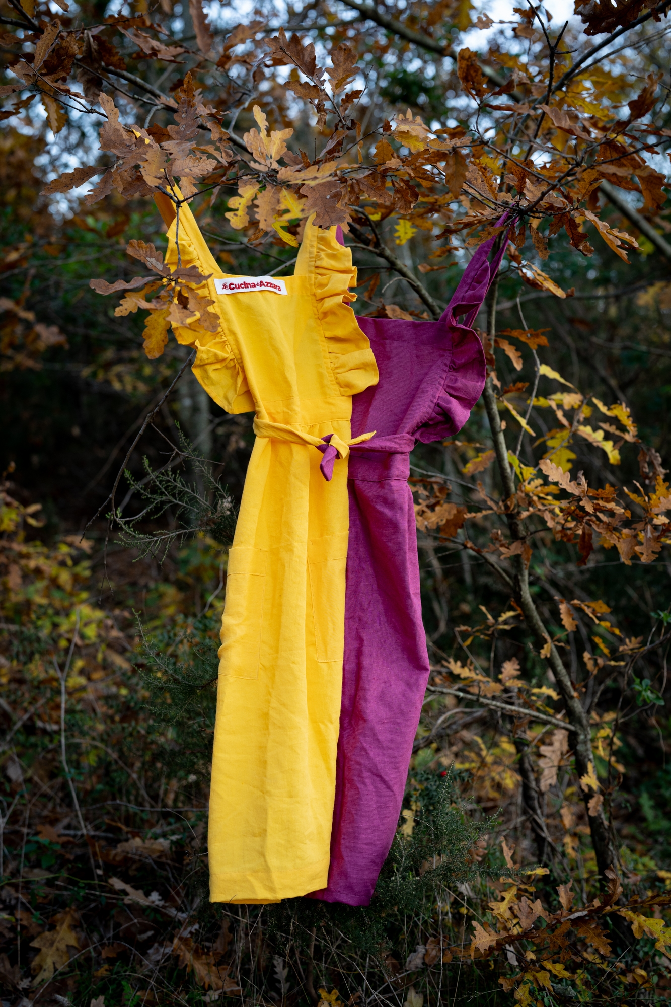 Una linea funzionale con canovacci in spugna a portata di mano, tasche grandi e bottoni vintage, grembiuli ampi e colorati “indossando” l’allegria!